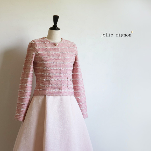 | メーカー | ジョリーミニョン ツイードノーカラー ジャケット 白、ピンク系 |