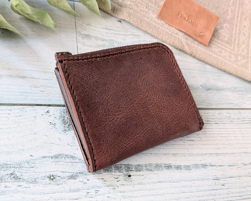 | メーカー | イタリアンレザー ヌメ革 L字ファスナー ウォレット ダークブラウン コンパクト |