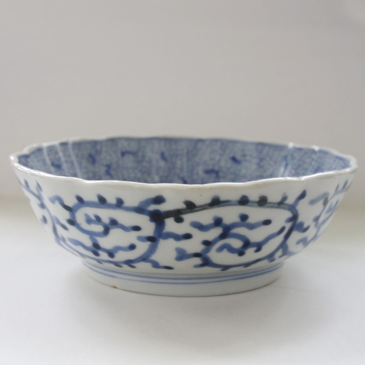 | 商品の特徴 | IM-21 古伊万里 みじん唐草小皿 5客 江戸後期 【匿名発送】 IM。IM-21 古伊万里 みじん唐草小皿 5客 江戸後期 【匿名発送】 IM。IM-21 古伊万里 みじん唐草小皿 5客 江戸後期 【匿名発送。【商品説明】 江戸後期の古伊万里 みじん唐草の小皿 5客、 成化年製銘があります。 1枚に高台にホツ・ザラツキがあります(鉛筆マーク参照)。 他はニューやホツは見当たりません。 焼成時の窯キズやひっつき、釉薬下のキズなどはキズの範疇に入れておりませんのでご理解のほどお願いいたします。 古陶磁にご理解のある方に購入していただきたく、円滑・スムーズなお取引をなにとぞお願いいたします。◇寸法 口径 約10.5cm 高さ 約2.8cm 高台径約6cmほどです。※個別には多少の差異があります。【発送方法】 ゆうパック【匿名発送】。fit=scale-down,w=1200。。古伊万里 染付芙蓉手蓋物 冨貴長春 状態良し 飴玉入れ。備前焼 窯変酒呑 ぐい呑み 小西陶蔵作 酒器 供箱付 A2。茶碗■呉須赤絵 窓柄絵花唐草鉢 魁 お茶道具 古玩 古美術 時代物 骨董品■。中国 南宋 建窯 天目 茶碗 V 5521。高見世清光 萩焼 水指 瓢形 替え蓋 仕服 共箱 茶道具 骨董品、美術品 | ||