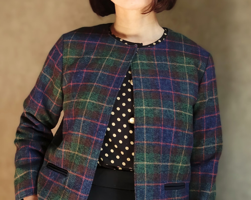 | 商品の特徴 | タータンチェック ジャケット L 緑×紺 / ノーカラージャケット。ノーカラージャケット〈チェック〉 | bo-te shop。CHRISTOPHER NEMETH クリストファー・ネメス Christopher Nemeth。色 ベージュブラウンL 肩幅41cm 身幅52cm 着丈67cm 袖丈 67cm着用数回の為、状態は良いです。何かありましたらお気軽にコメント下さい。。Coohem COOHEM(コーヘン) ノーカラー ニットツイード。 | ||