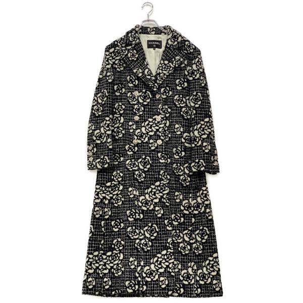 未使用品 シャネル ロングコート ココマーク カメリア コサージュ ツイード L 美品 シャネル ロングコート カメリア 23-24AW P75870V67457