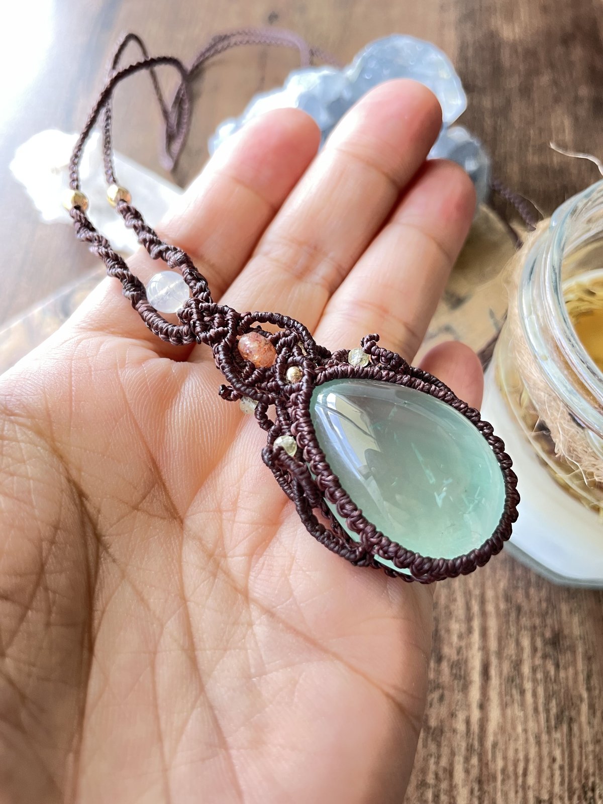 | メーカー | フローライト&ガーネットのマクラメ編みネックレス ペンダント 天然石 |