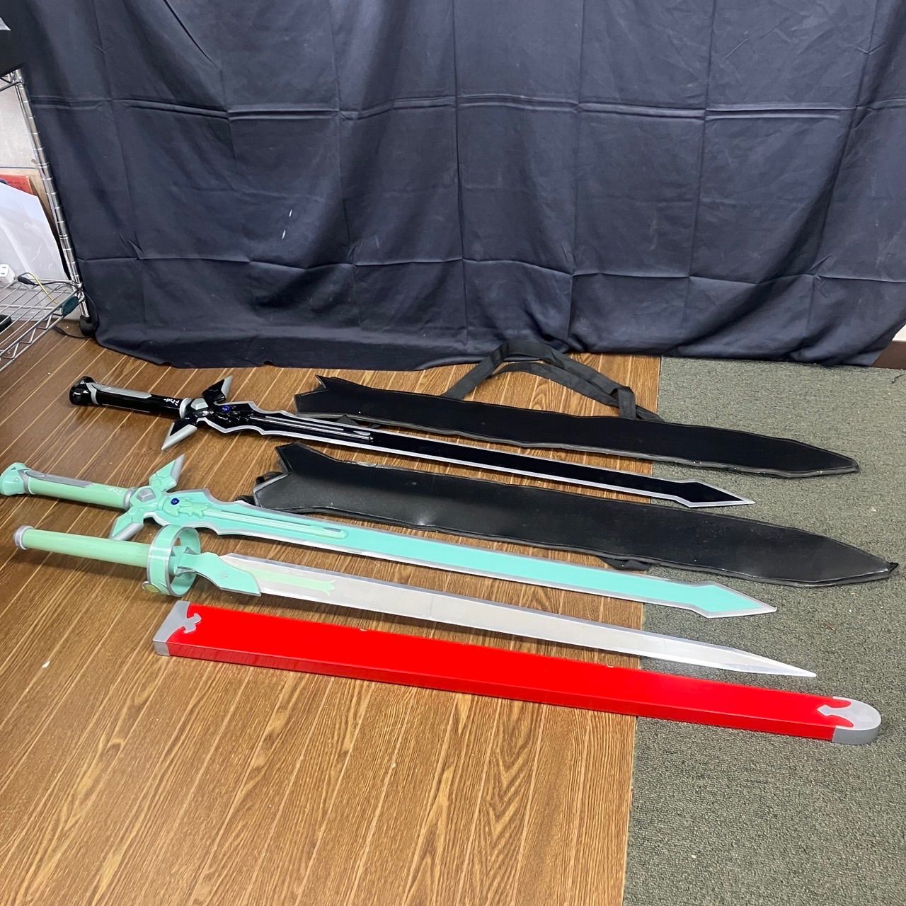 - 美術品・アンティーク・コレクション > 武具 > 模造刀セット 朱漆鞘 脇差 打刀 鞘付き長約70cm/105cm 25H2 模造刀セット 朱漆鞘 脇差 打刀 鞘付き長約70cm/105cm 25H2 模造